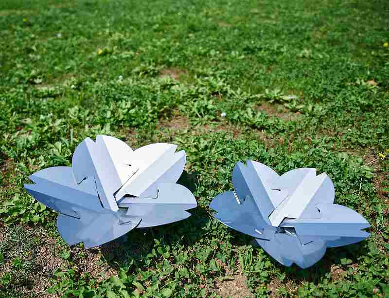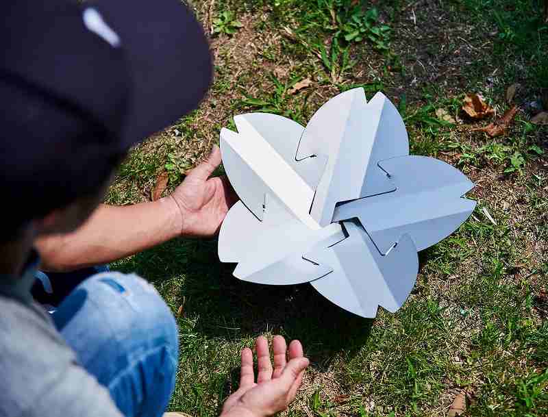 それぞれまったく同じ形状の花弁プレートを5枚組み合わせることで、桜型の焚き火台が完成します。