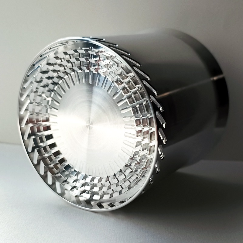 削り出し加工のメリットとして強度と厚み0.5mmの加工に成功しました。