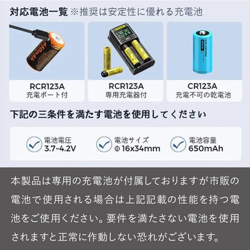 ・専用充電池以外の電池を使用される場合は3.7V〜4.2Vの電圧を満たす製品をご使用ください。