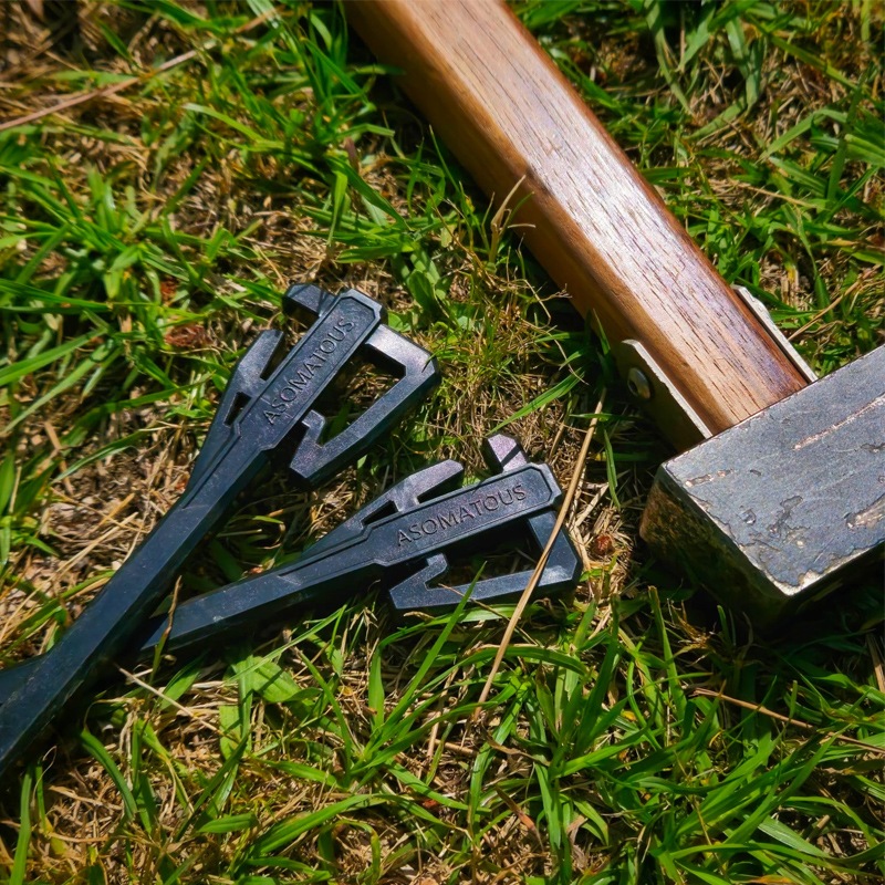 「ASAP」は今までにない非常に画期的で軽量な樹脂ペグです。ブッシュクラフトやクライミングなどでも用いられる「ロープの屈折による摩擦力」を応用し、「自在金具」がなくても簡単にラインの張り具合を調整、固定することができます。