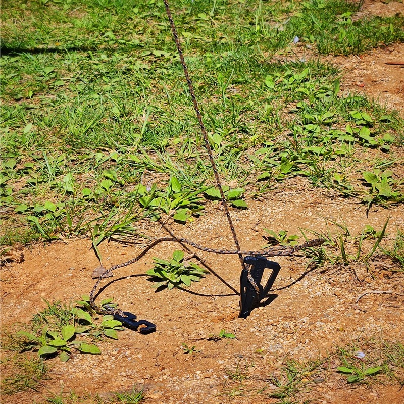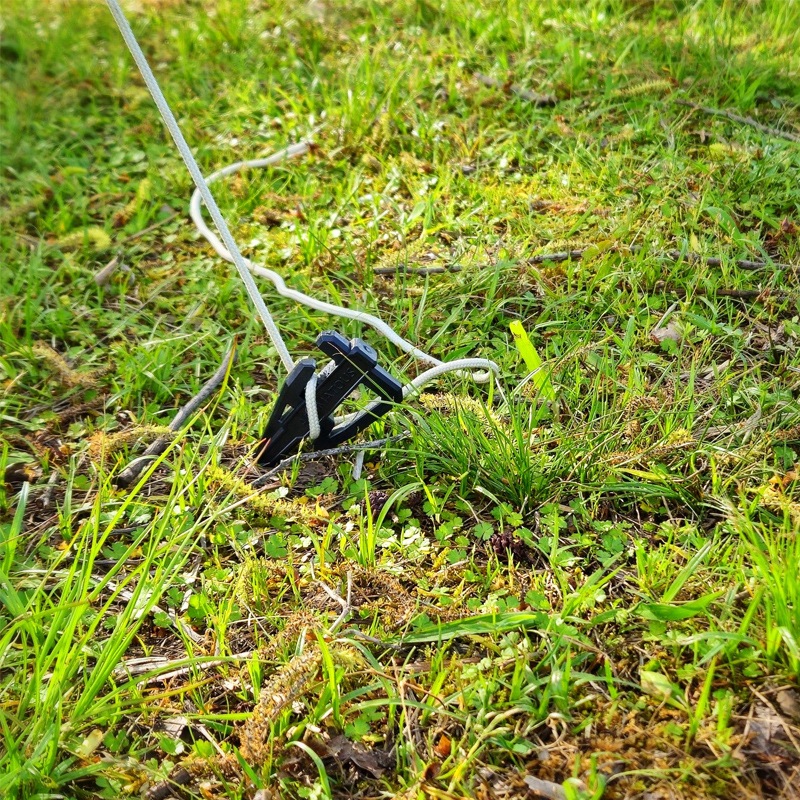 そして従来に比べラインを短くすることができるため、省スペースでの設営が可能となります。これにより区画サイトやイベントなどでのラインがはみ出てしまう問題や、ラインに足引っ掛けてしまう問題など、自在とラインが原因の問題に最適解を出すことができます。