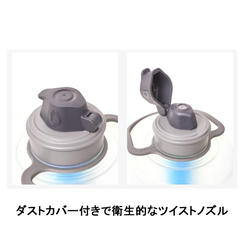 回すことでon/offできるツイストノズルにはダストカバーを備え水の出口、飲み口部分を常に清潔に保てます。