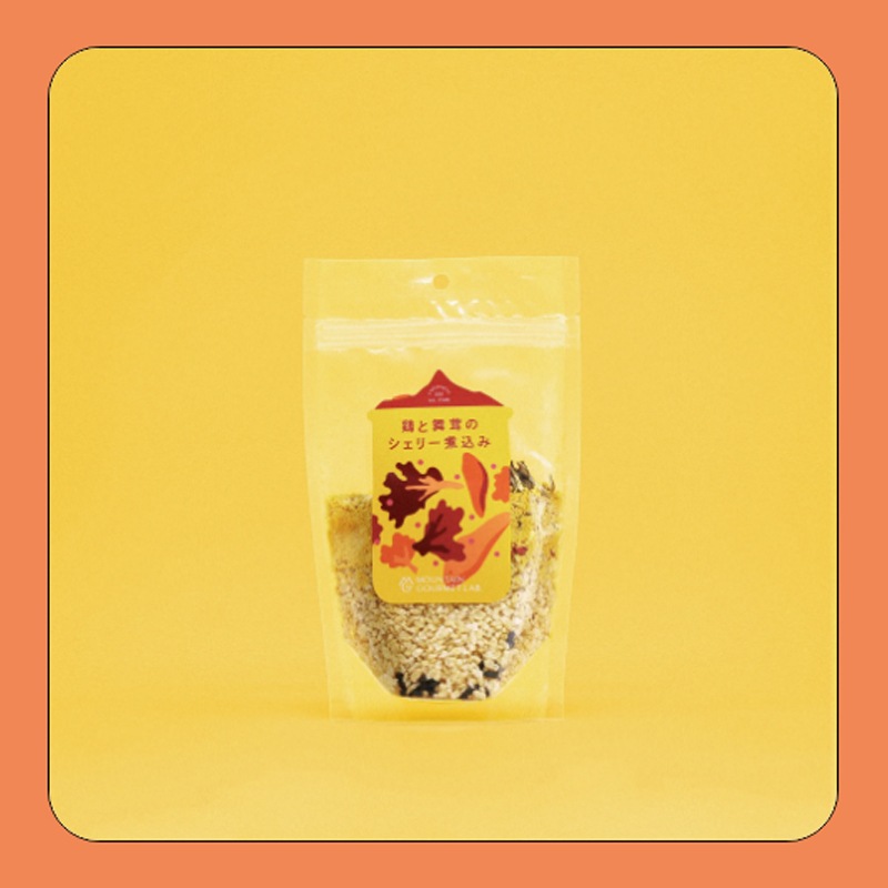 ライス(うるち米(国産)、もち米(国産))、シェリーソース(甘味果実酒、玉ねぎ、人参、セロリ、にんにく、植物油脂、乳等を主原料とした食品、ワイン濃縮調味液)、鶏肉、舞茸、食塩、香辛料/香料、酸化防止剤(ビタミンE、ビタミンC)、(一部に小麦・乳成分・鶏肉・大豆を含む)