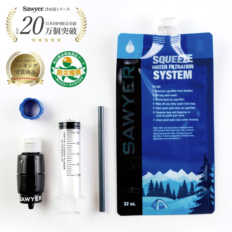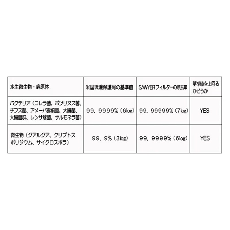 ソーヤーはポータブルな浄水器としては世界最高水準の浄水性能を誇る浄水フィルターです。