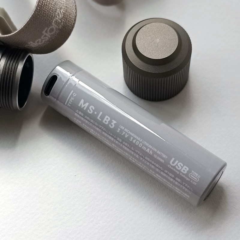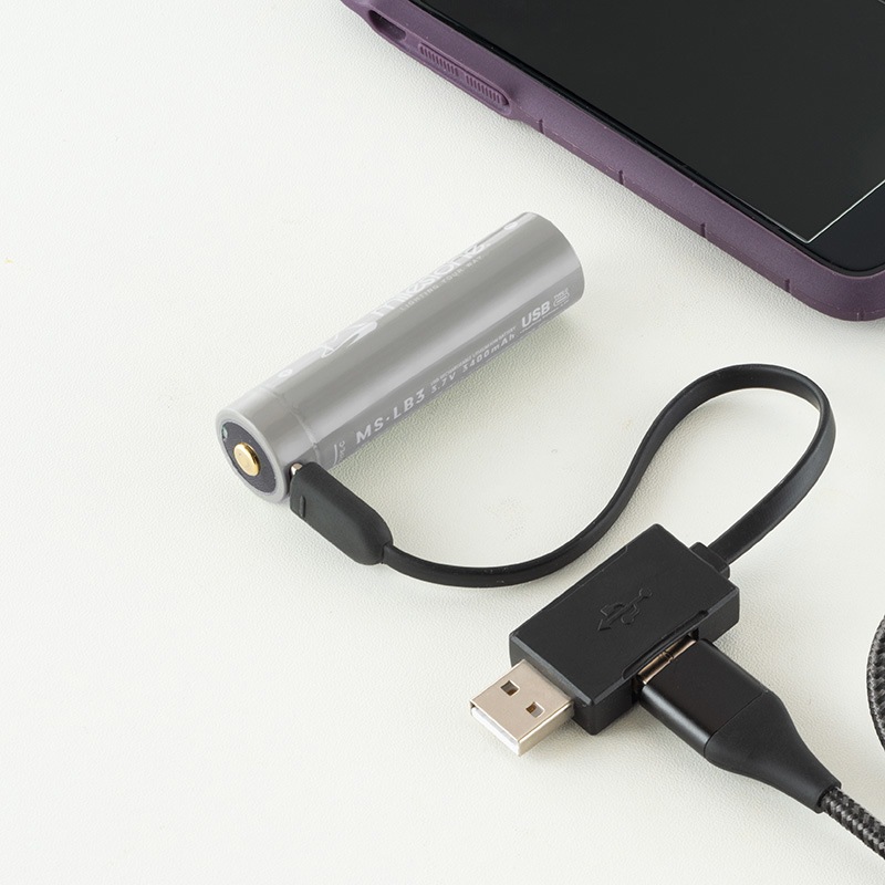 MS-i1の専用バッテリー。付属の専用ケーブル(USB-TypeC)を経由すれば、スマホや時計を 充電可能。