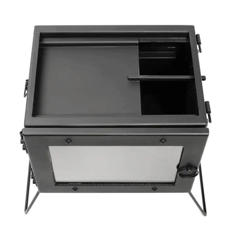煙突、可動式バッフル、天板を外すと焚き火台としても使用できます。