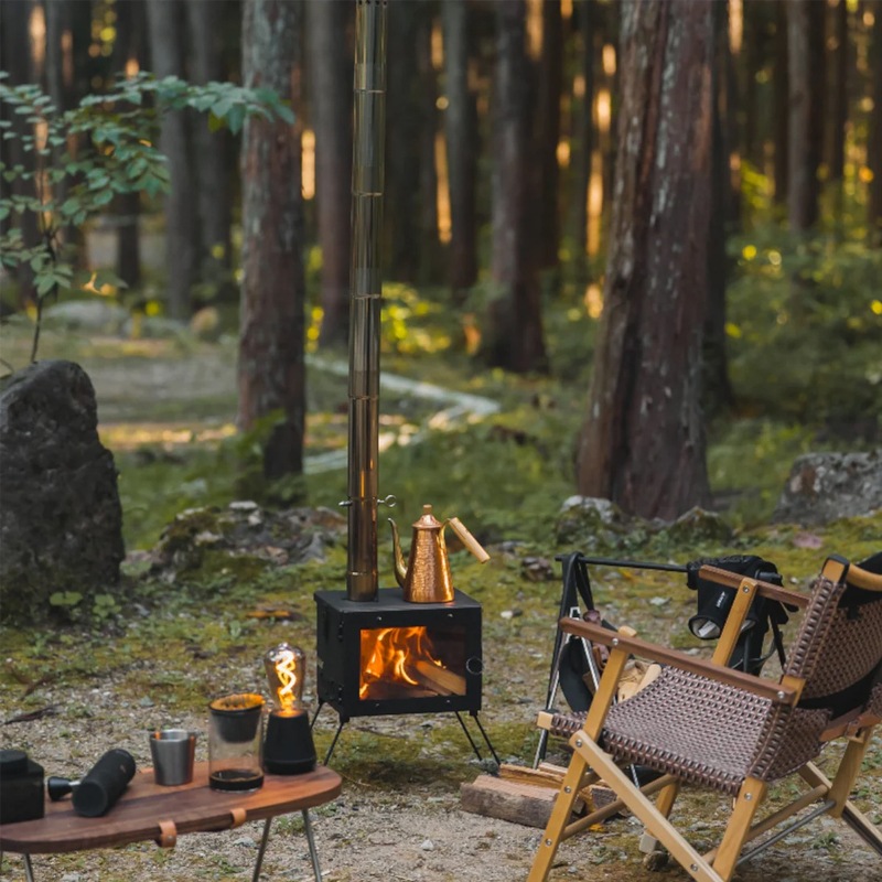 煙突やアクセサリー類はすべて炉内に収納可能。荷物をすっきりまとめられるうえ、設営や撤収もスムーズ。シンプルな構造ながら二次燃焼機構を搭載し、高い燃焼効率・クリーンな煙・少ない灰を実現。初心者でも扱いやすく、オールシーズン活躍する万能モデルです。