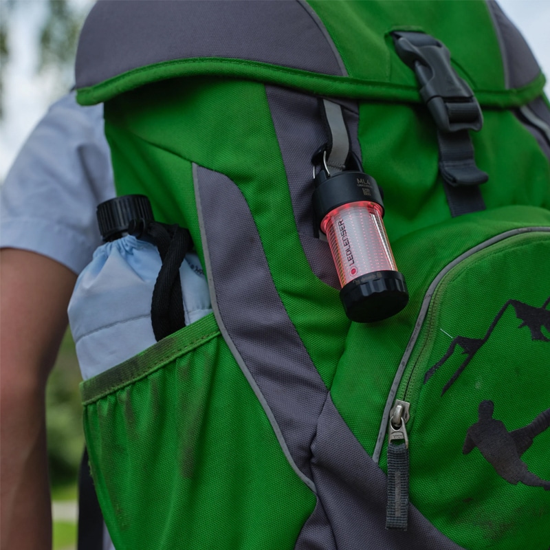 カラビナフックで、バックパックやベルトループに装着可能。最先端のマイクロプリズムテクノロジーが、眩しさを軽減して効率的に周囲を照らし出します。