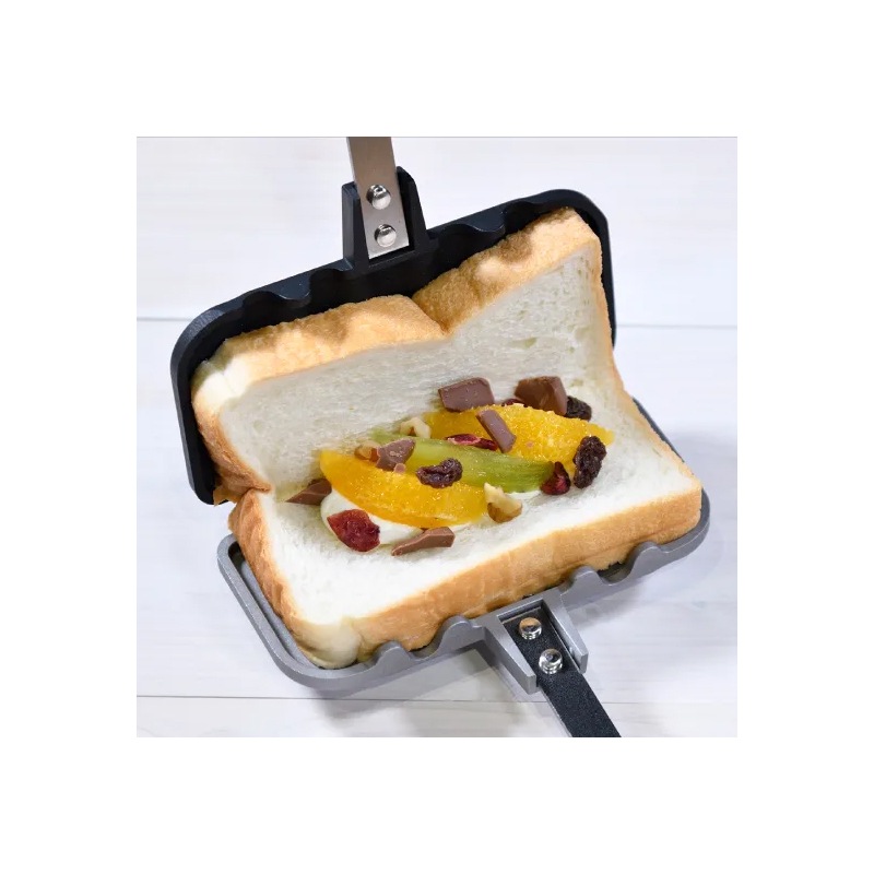 ホットサンドメーカーを閉じる時、パンの端がハミ出ないよう収まりよく、しっかり圧着させるための最適な形を研究しました。