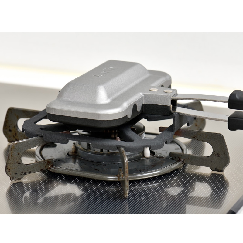 ひっくり返しながら両面を焼くホットサンド。