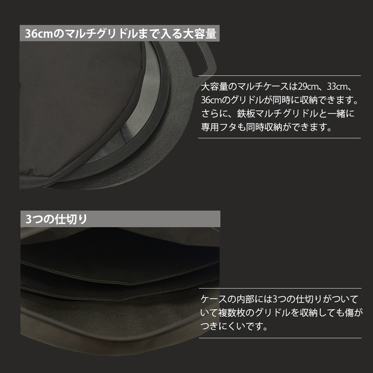 鉄板マルチグリドル36cmはもちろん、専用フタも同時収納が可能です。