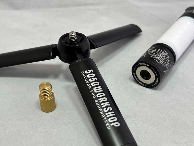 5050WORKSHOPのMINIMALlight、MINIMALlight REMOTE CONTROLの先端(レンズ部分)と付け替えることで1/4ネジの製品に取り付けができるようになる拡張パーツ。