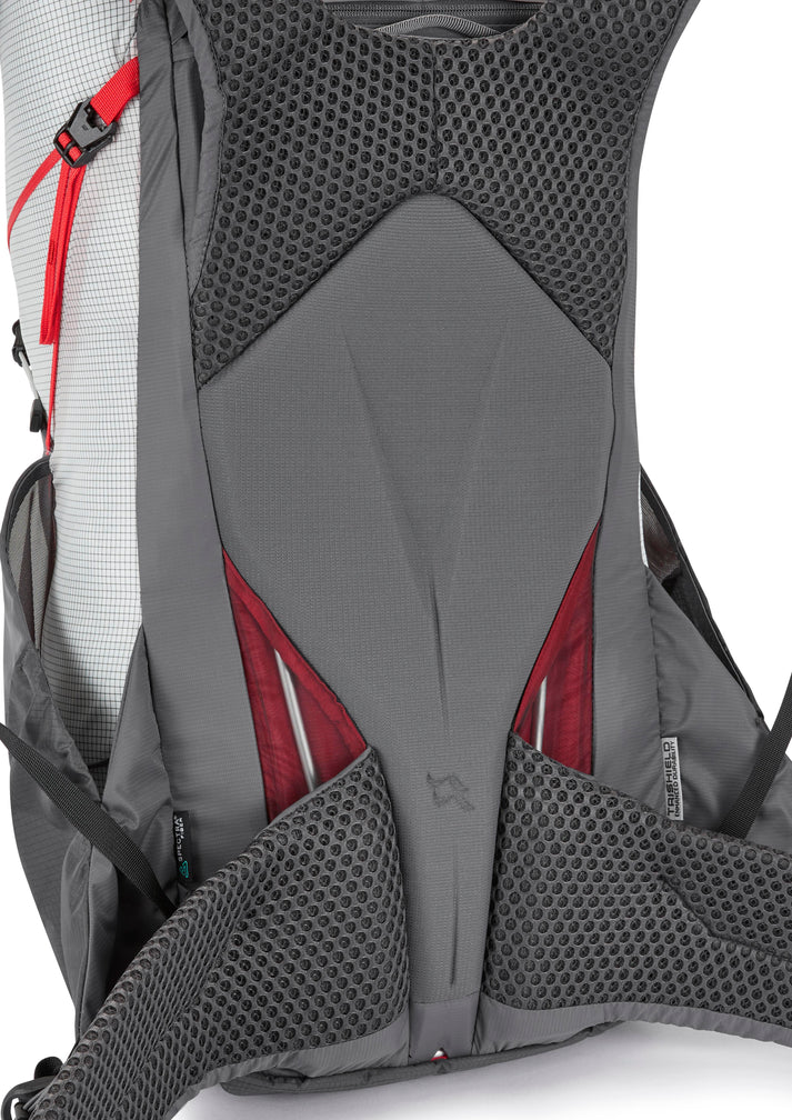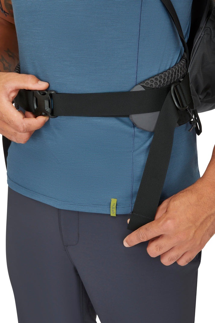 シェイプされたランバーパッドとサポート力のあるヒップベルトが、長時間の使用でも快適さをサポート