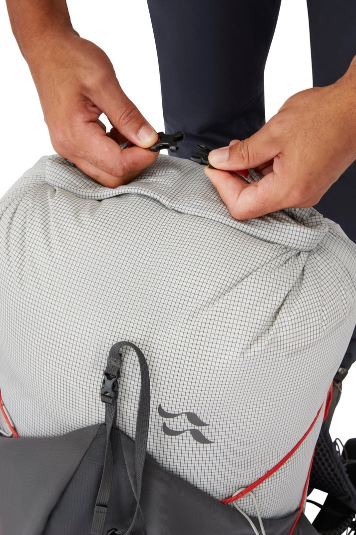 ロールトップクロージャーにより、キットの変更に合わせてパックの拡張と圧縮が可能