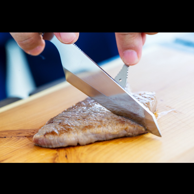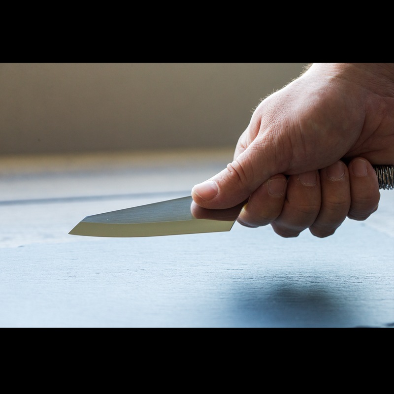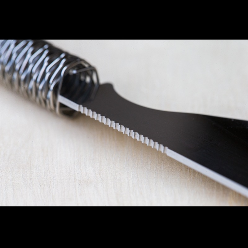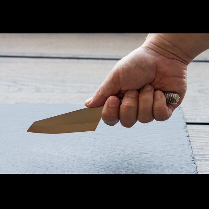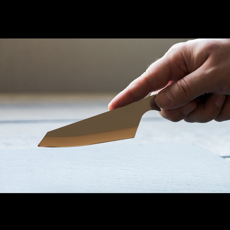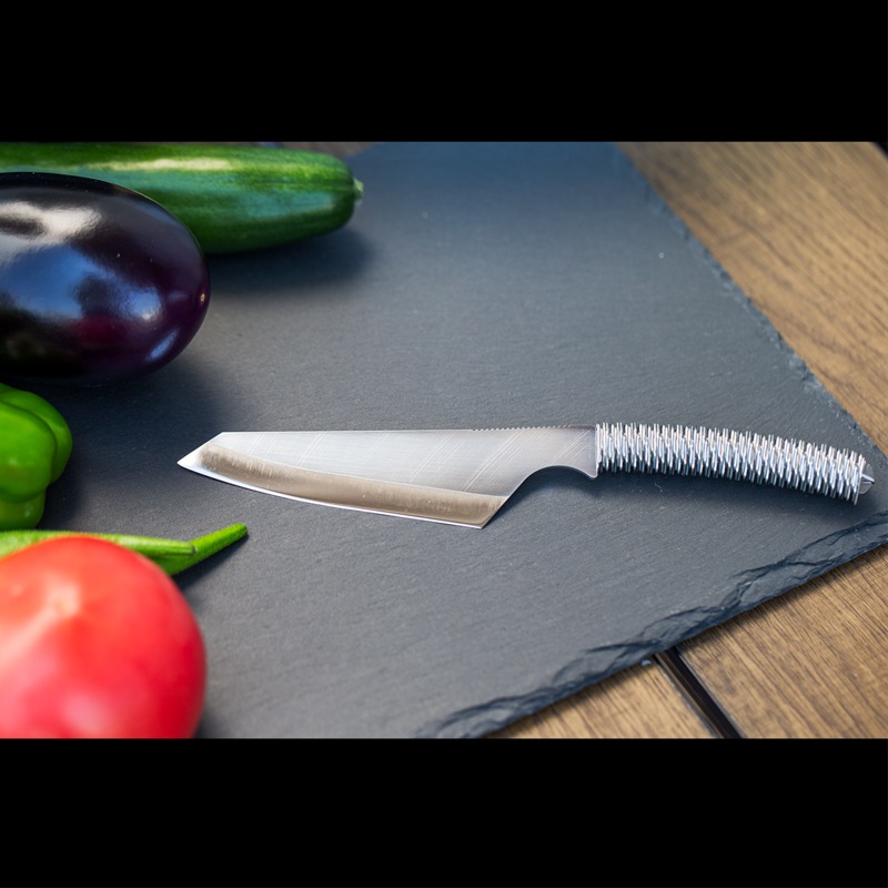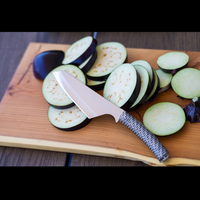 調理用ナイフでありながら、ブッシュクラフトナイフの要素を取り入れた独特の構造が特徴です。