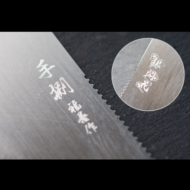 オリジナルモデル「銀閃花」の携帯性はそのままに、刃幅を広げることで、より幅広い食材に対応できるよう再設計されています。
