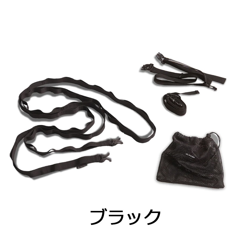 両サイドに延長可能ベルトを付属しており、基本使用380cmから530cmまで伸ばすことができ、