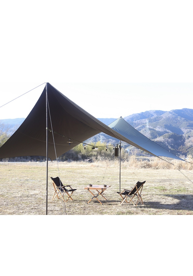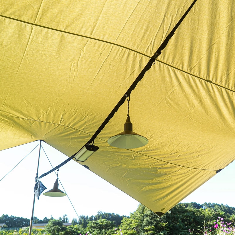 高く設置した場合は天井からのあかりをタープ下に広く届けることが可能になります。