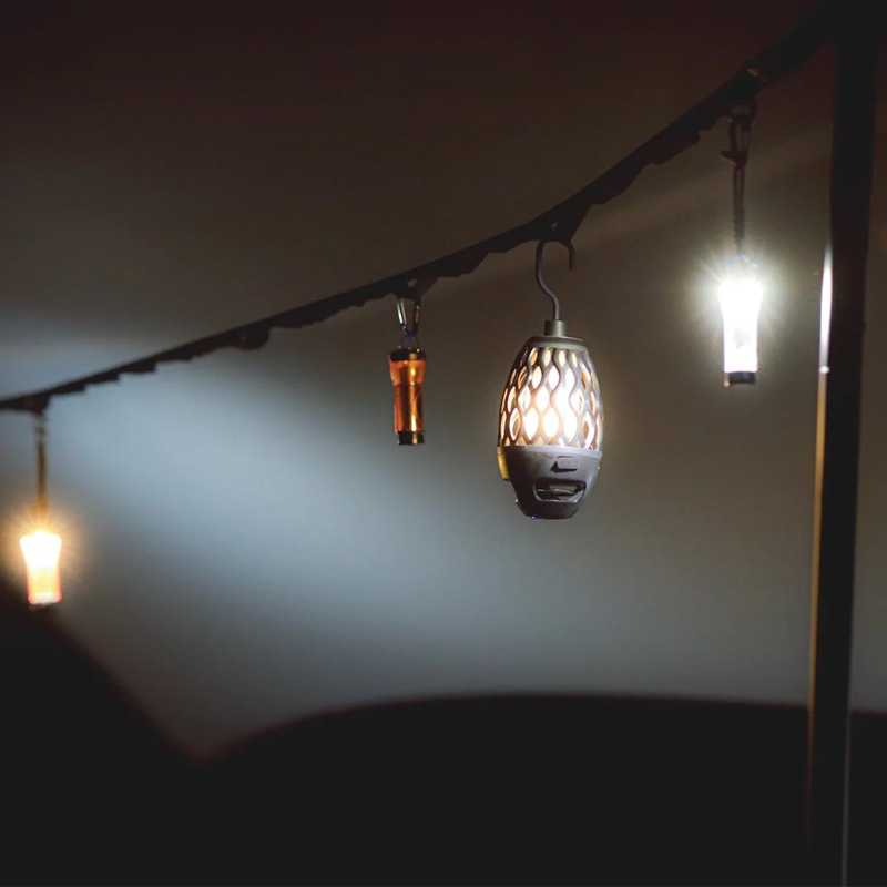 低く設置した場合は LED ライトだけでなく、シェラカップなどの小物を吊るすのに便利です。