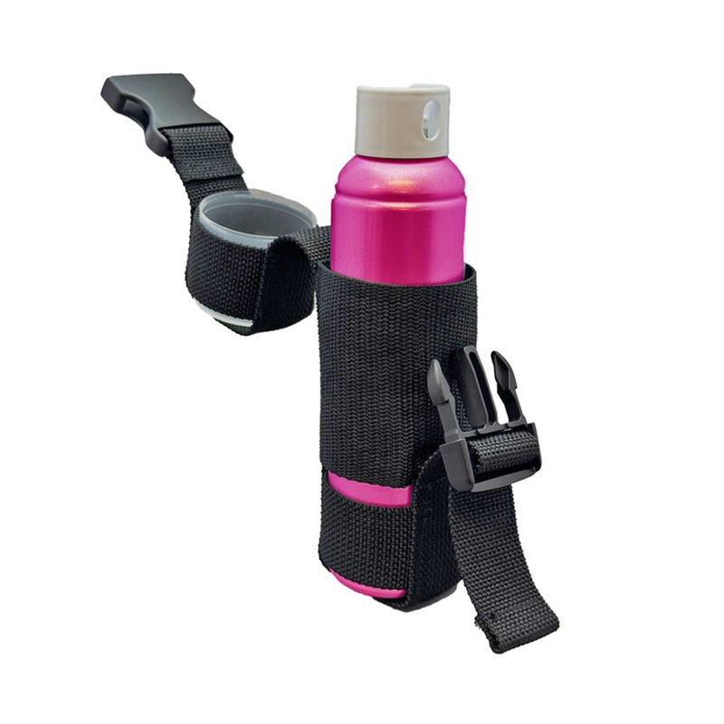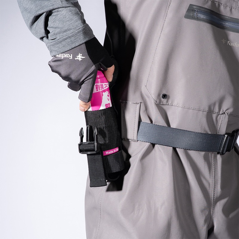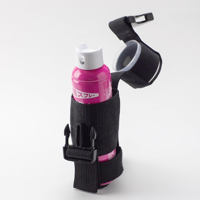 成分・飛距離・噴射時間・使用期限などの諸スペックは海外ブランド製品と同レベル以上を確保し、国内外の各種安全基準も満たしています。さらにスプレーノズルは緊急時でも咄嗟に噴出しやすいユニバーサルデザイン形状です。また専用ホルダー(セット販売)は、携帯時の安全性とクイックアクションでの本体取り出しを両立させています。