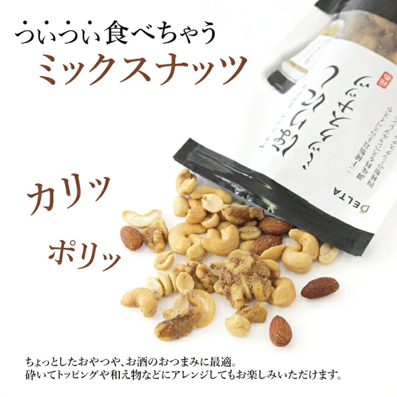 クルミ、ピーナッツ、カシューナッツ、アーモンドの4種類のナッツに、ほりにしをまとわせたミックスナッツ☆