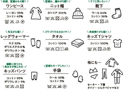 ※特にデリケートな衣類は洗濯ネットのご使用をおすすめします。